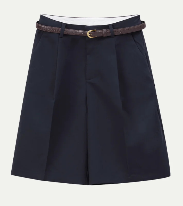 Description: These women’s shorts are a versatile addition to your wardrobe. Made of soft and structured fabric, they ensure comfort and a polished look in multiple seasons. The front pleats and belt add a stylish detail, and the practical pockets enhance both style and functionality. The relaxed tailored fit flatters your figure, making it suitable for daily work, casual outings, or semi-formal events. Pair it with tops, blouses, or sweaters for a chic look that can be accessorized to suit various occasions. Stay comfortable and fashionable with this trendy short.