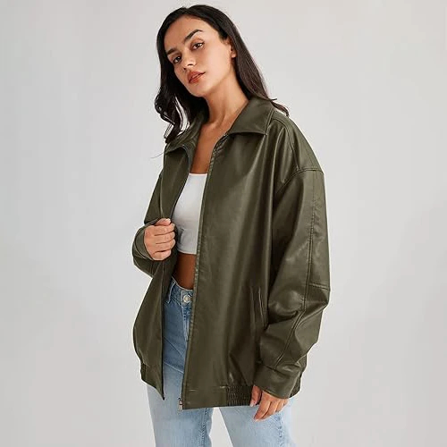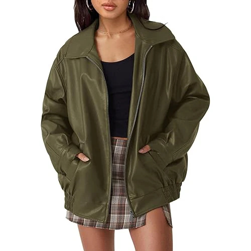Women's Jackets Ladies Oversize Vintage Bomber Leather Jacket Women Real Soft Leather Jacket Casual