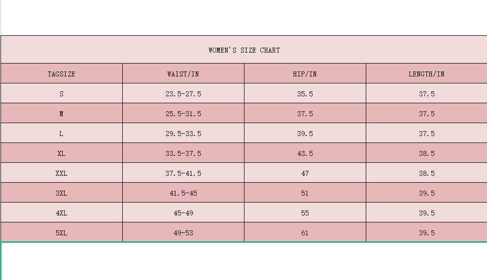 | Size | S US women's letter, M US women's letter, L US women's letter, XL US women's letter, 2X US women's letter, 3X US women's letter, 4X US women's letter, 5X US women's letter, Custom order US women's letter |