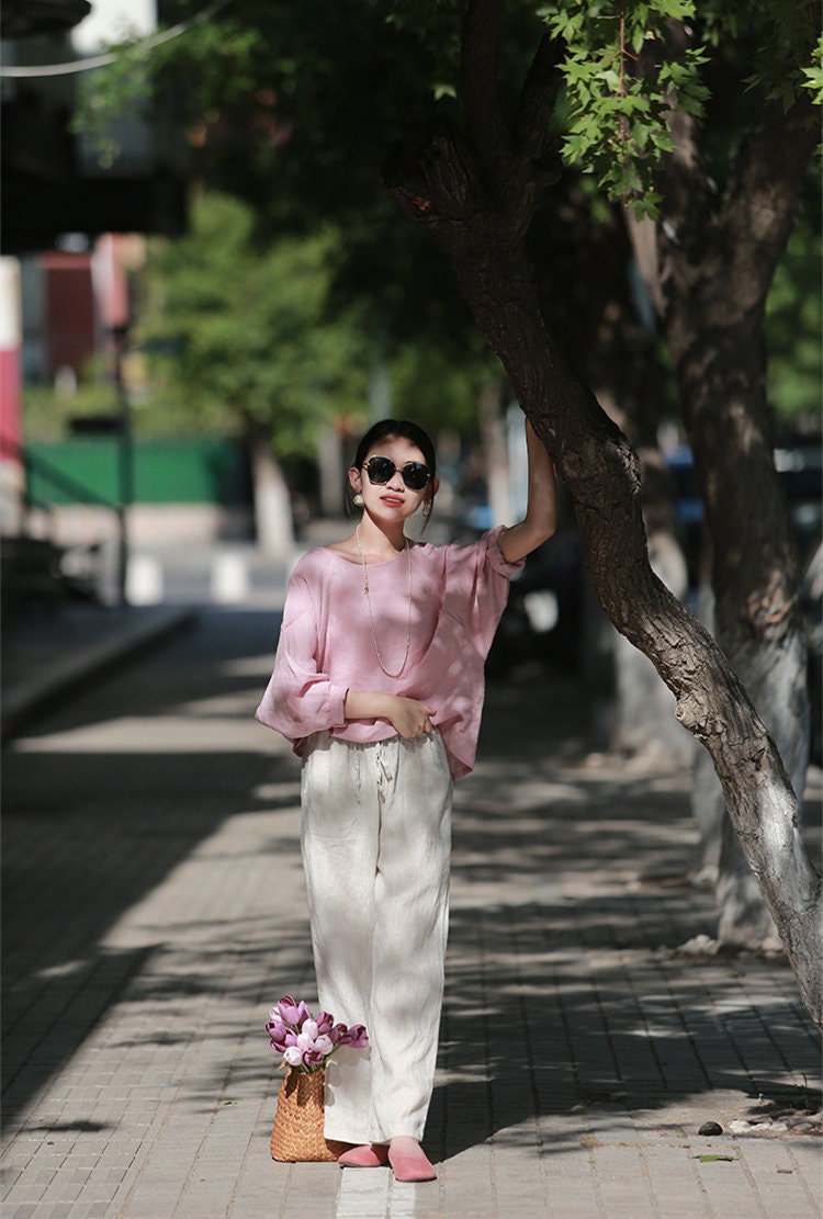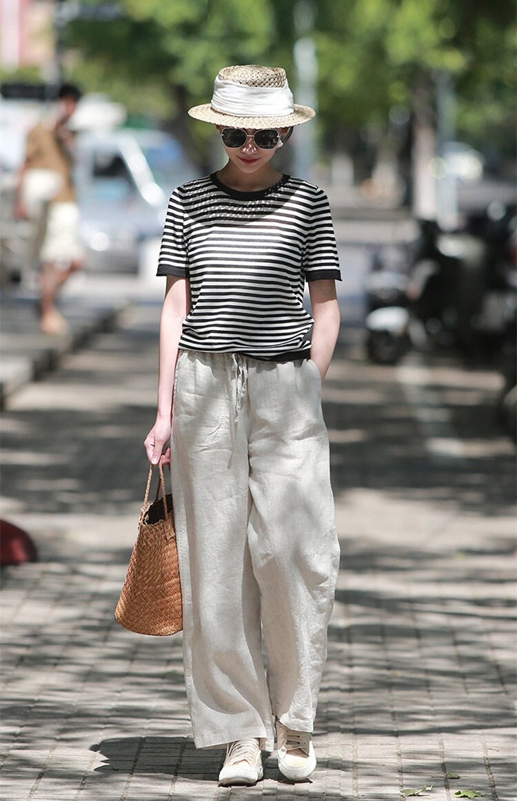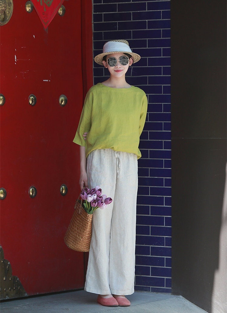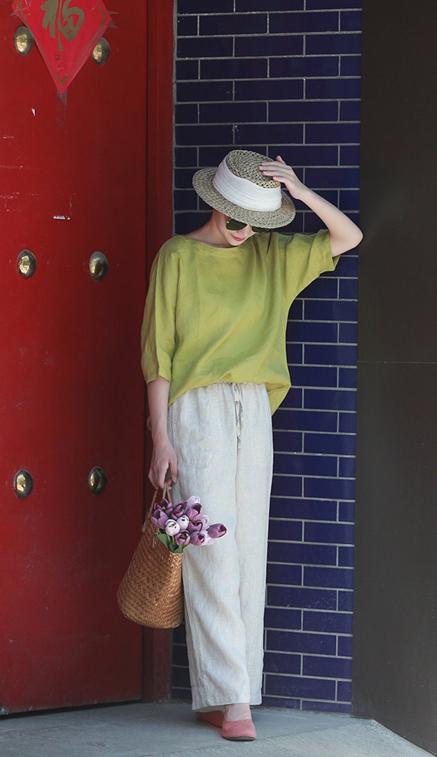 Women's linen pants, linen trousers, wide legs long pants, plus size pants, loose casual maxi pants, summer custom full length pants N05-1