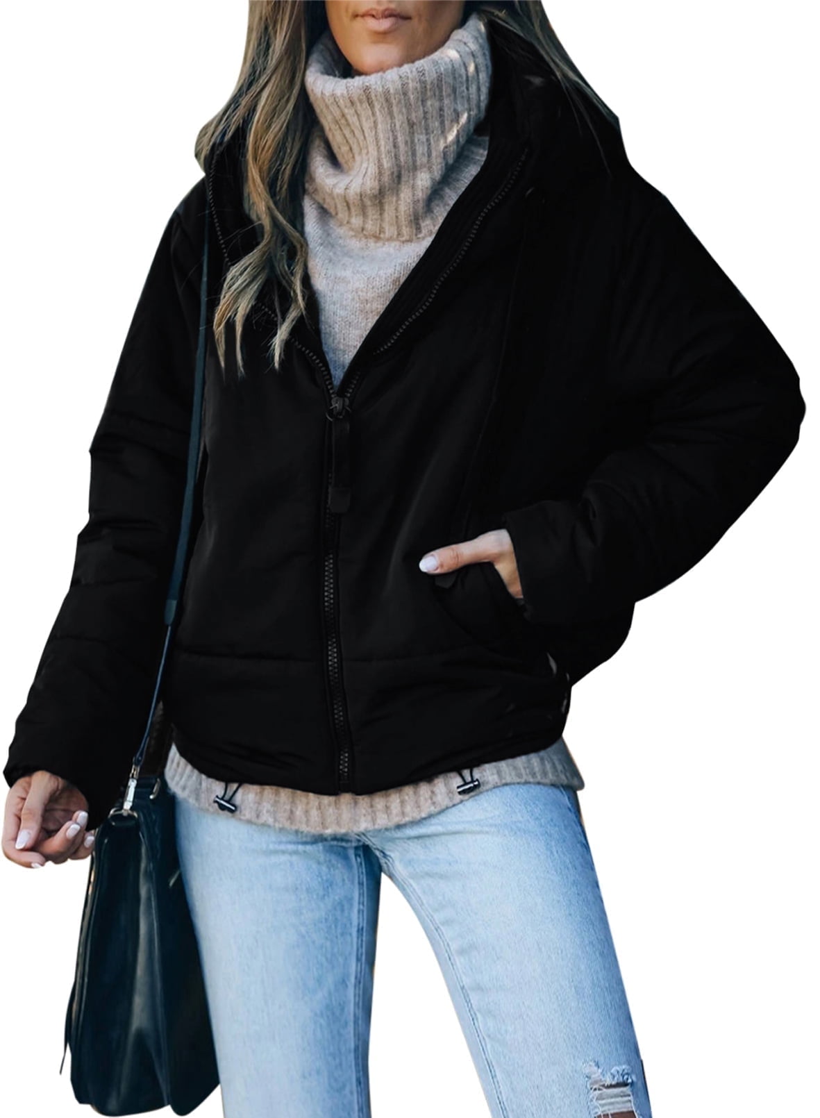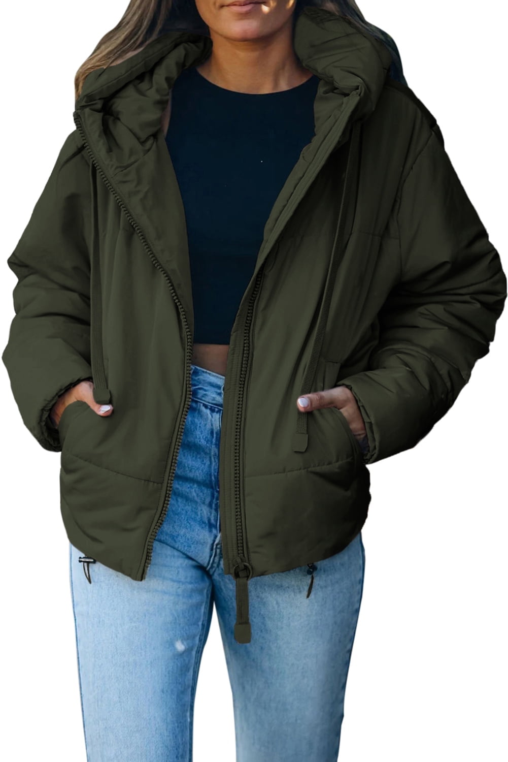 Womens Puffer Jacket Winter Warm Drawstring Hooded Cropped Coat with Pockets Plus Size Petite