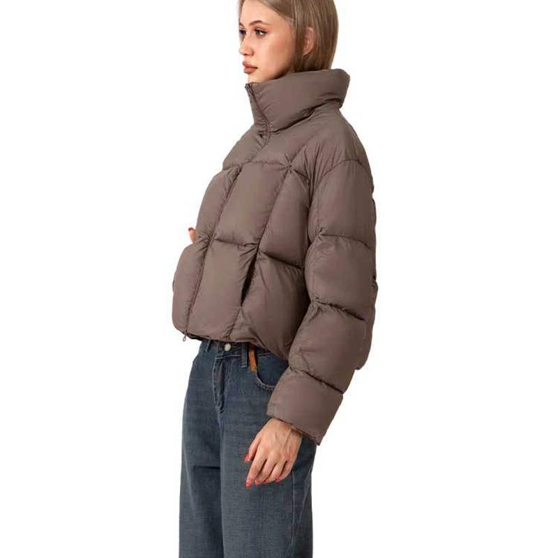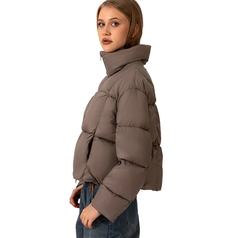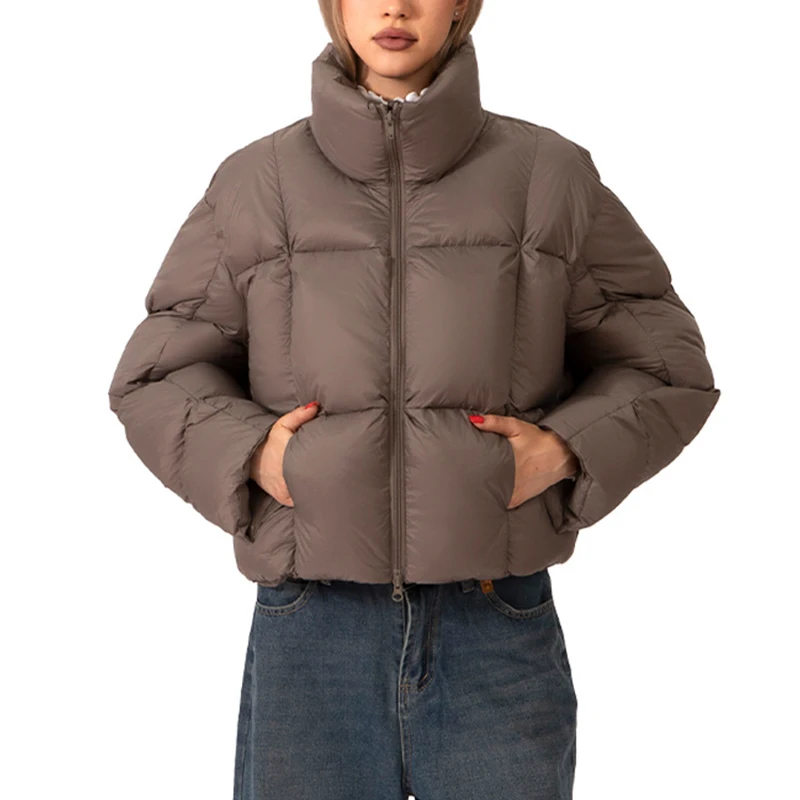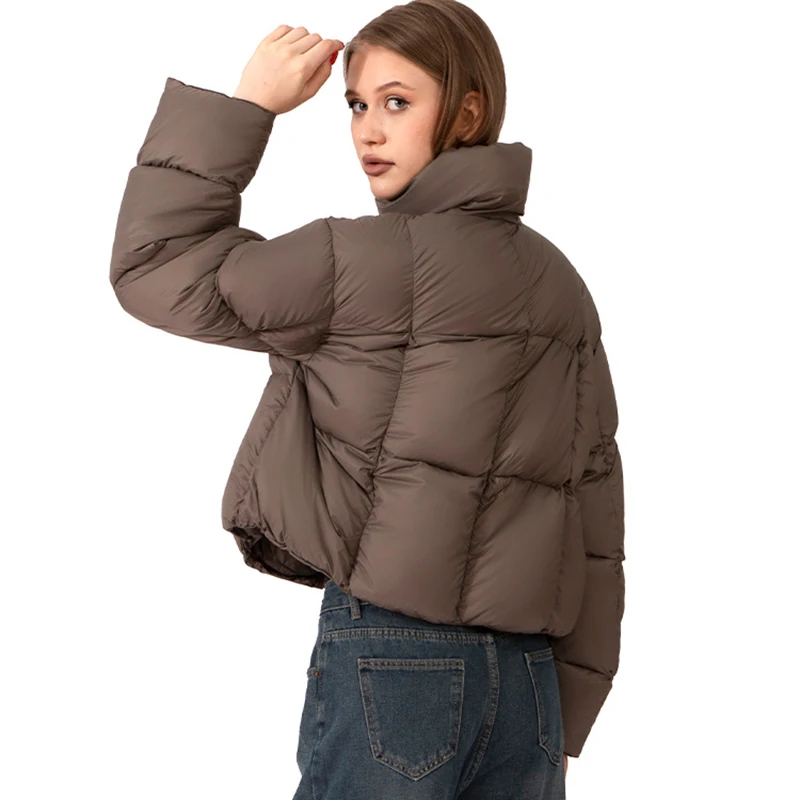 Women's Short Windproof Lightweight Winter Puffer Jacket with White Duck Down Filling