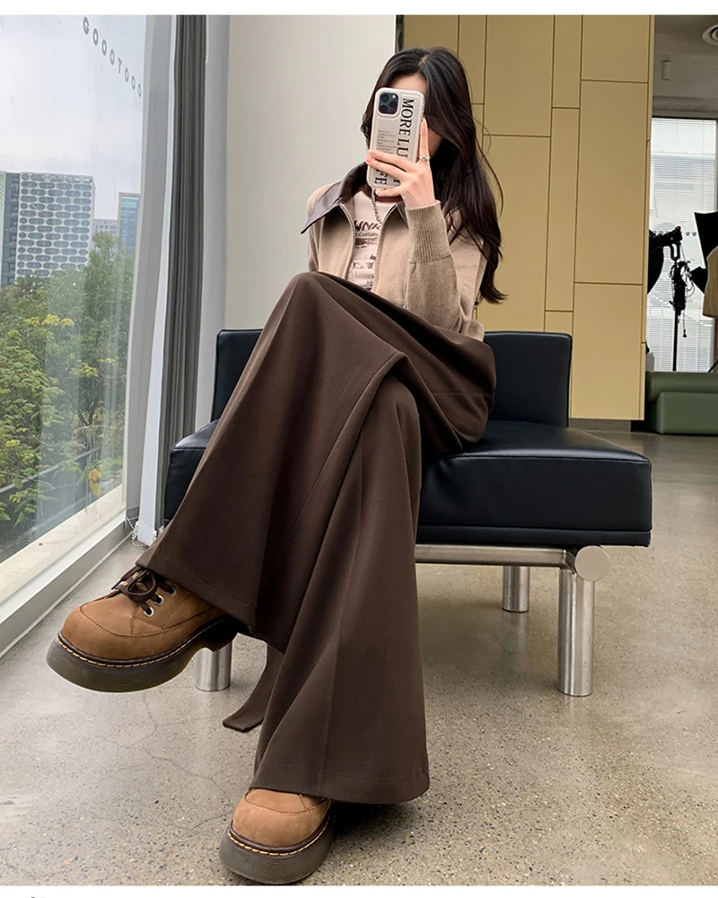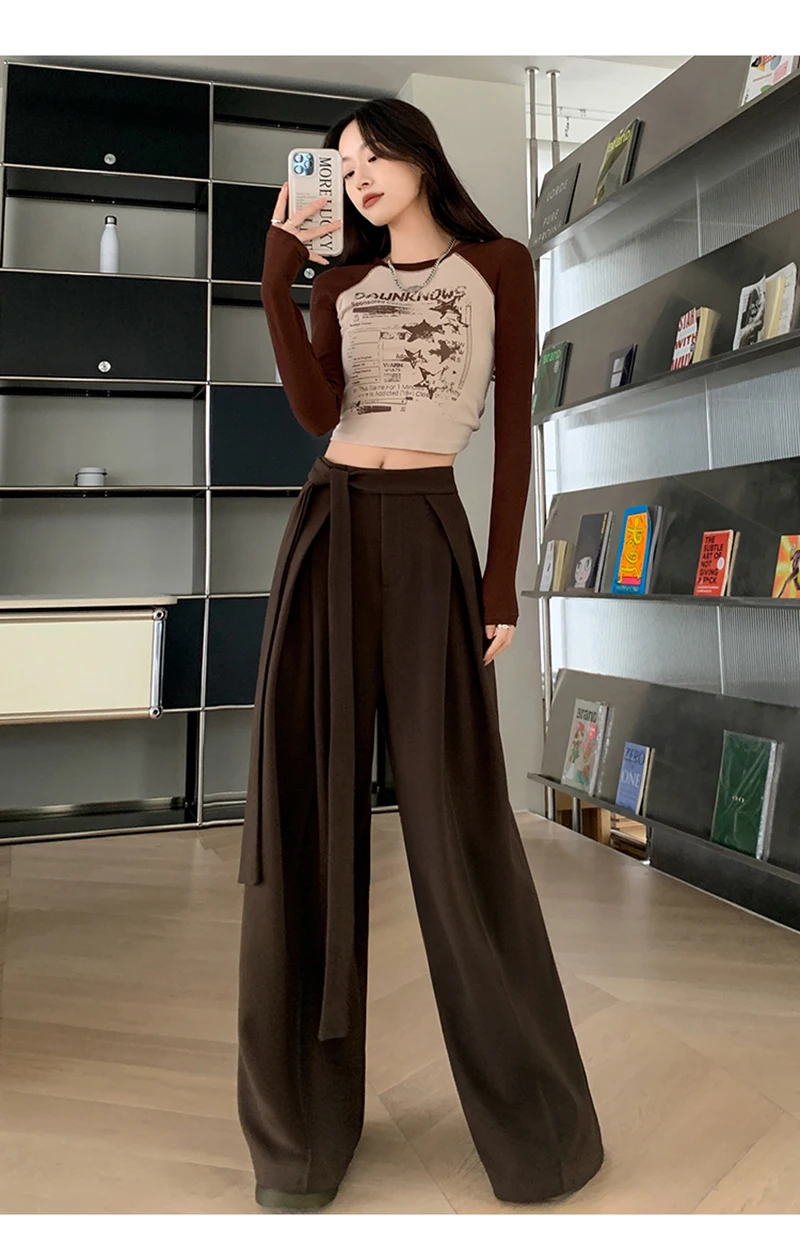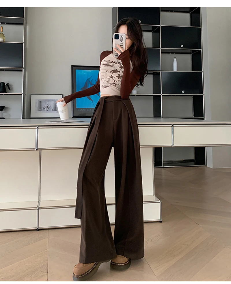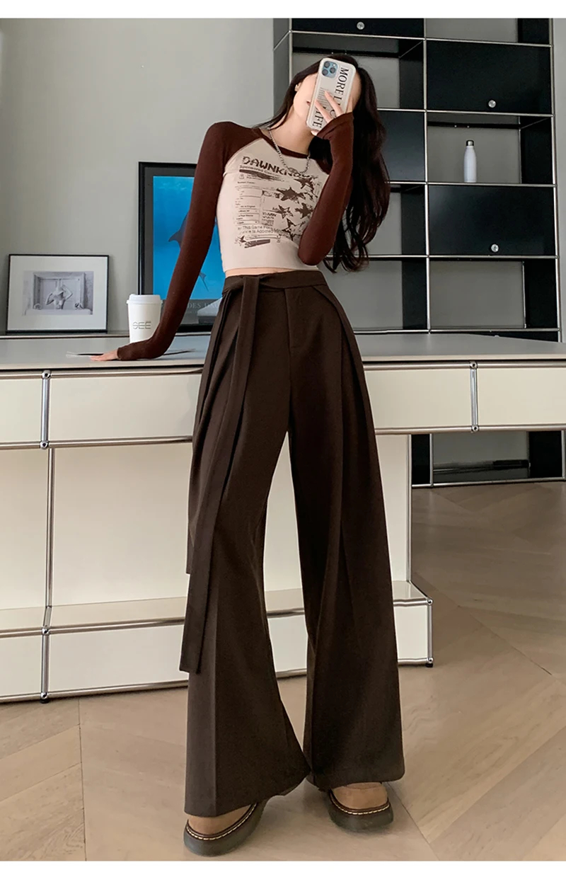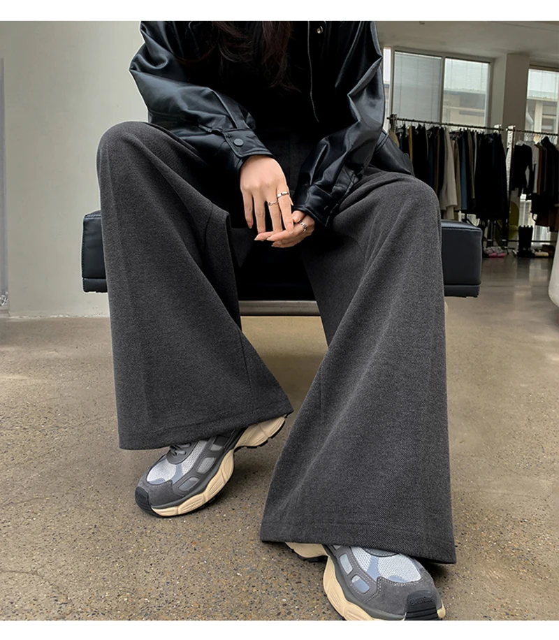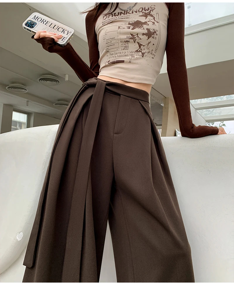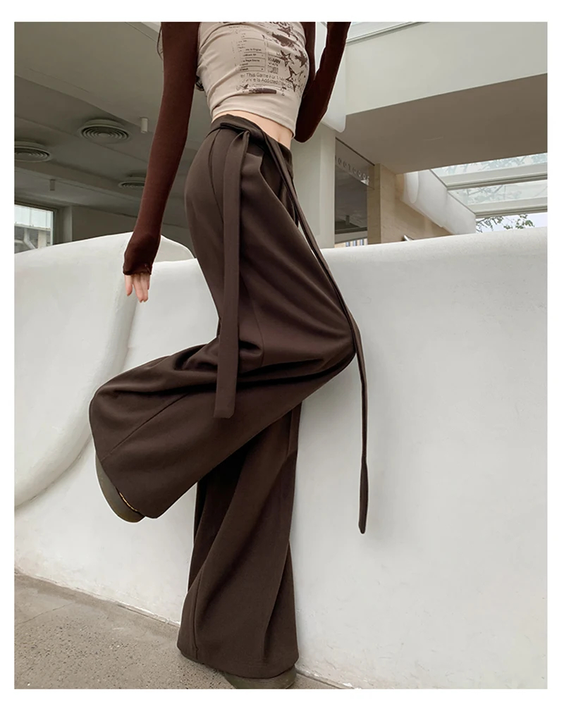 Woolen Wide Leg Pants Women Fashion Lace Up Black Baggy Suit Pants Winter Streetwear Korean Casual Straight Trousers New