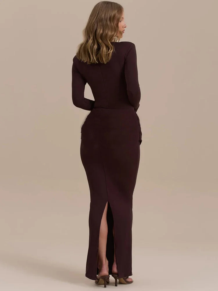 Flattering Fit: Designed in a bodycon fit, this women’s long-sleeved maxi dress accentuates your silhouette, showcasing a confident and stylish look effortlessly.