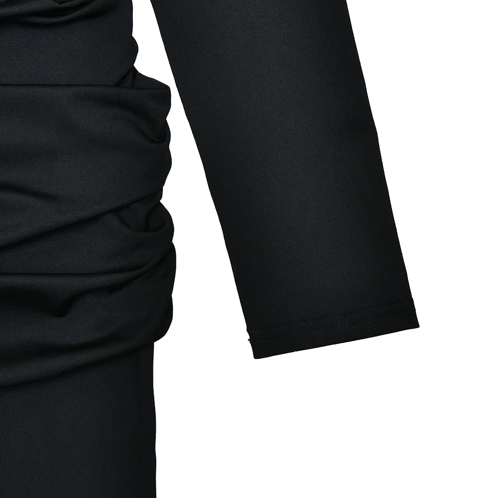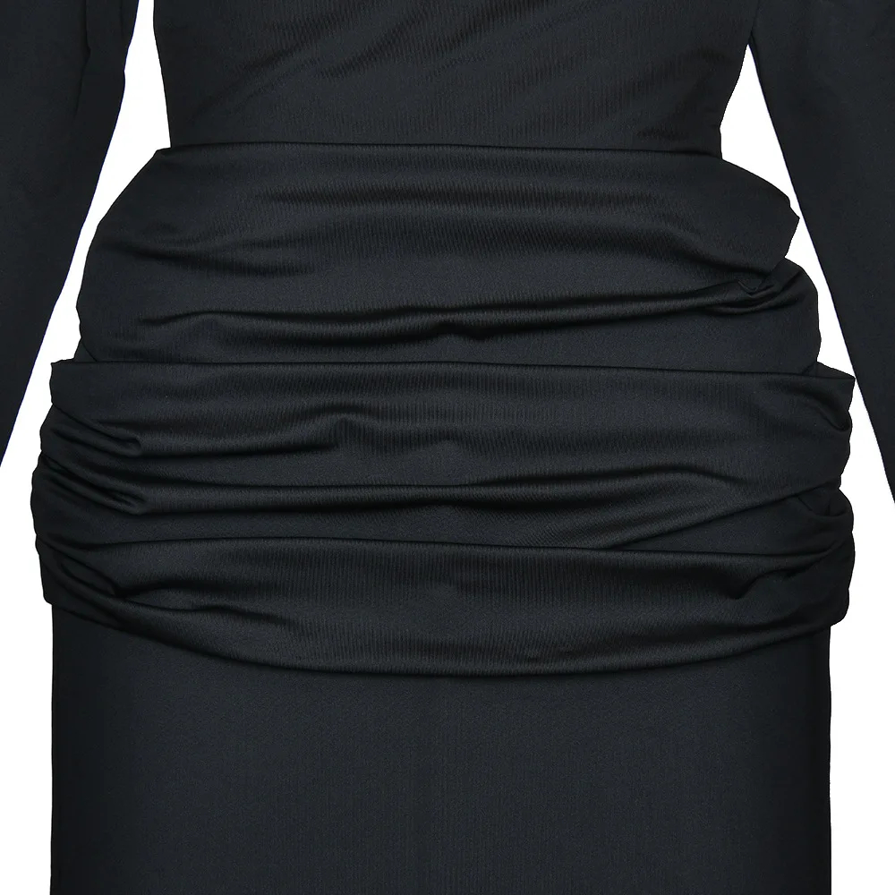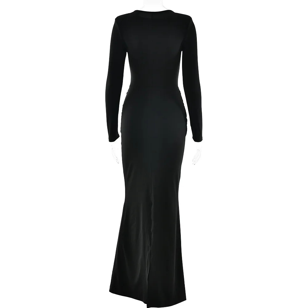 Description: This women’s long-sleeved maxi dress is a versatile addition to your wardrobe. Made of premium stretch fabric, it exudes sophistication for formal or evening settings. The draped waist detail adds a stylish element, and the bodycon fit flatters your figure, making it suitable for parties, formal outings, or elegant events. Pair it with heels or sandals and complementary accessories for a chic look that adapts to various occasions. Stay elegant and confident with this trendy dress.