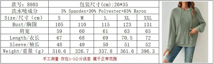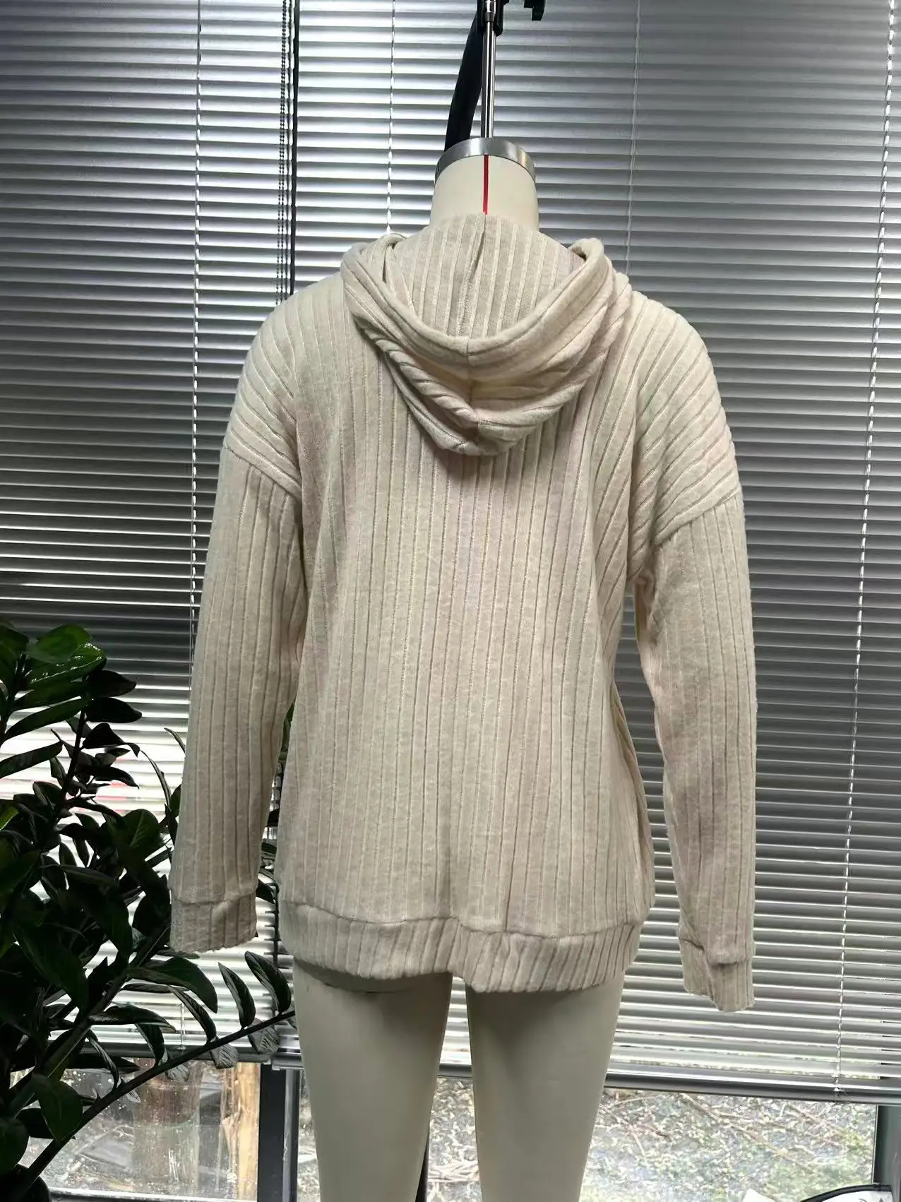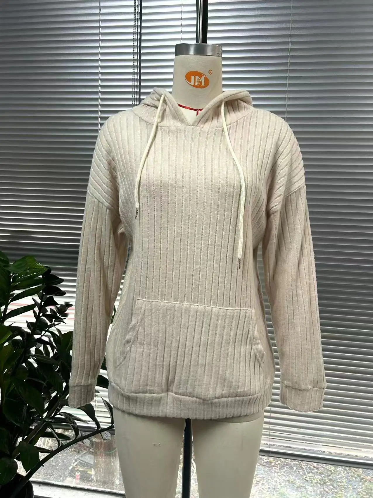 Description: This women’s long-sleeved ribbed hoodie is a versatile addition to your wardrobe. Made of soft and cozy ribbed fabric, it keeps you warm in spring, autumn, and winter. The hood with drawstrings and kangaroo pocket add stylish and practical details, and the relaxed fit ensures comfort, making it suitable for daily wear, casual outings, or relaxed gatherings. Pair it with jeans, leggings, or skirts for a chic look that can be accessorized to suit various occasions. Stay comfortable and fashionable with this trendy hoodie.