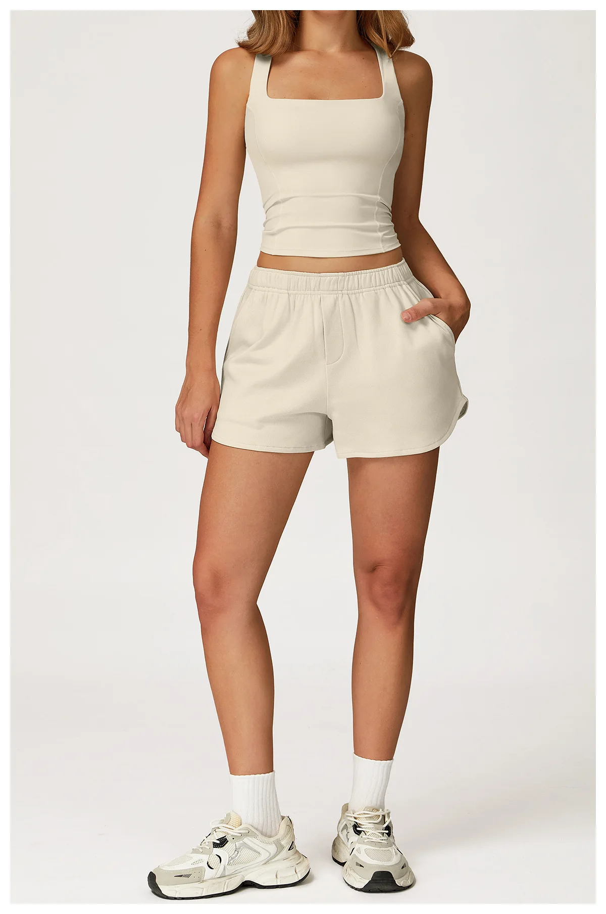 Description: These women’s shorts are a versatile addition to your wardrobe. Made of soft and flexible fabric, they ensure comfort in spring, summer, and for light activities. The elastic waistband provides a personalized and comfortable fit, while the side pockets add a stylish and practical detail. The relaxed fit with a curved hem flatters your figure, making it suitable for daily wear, workouts, or casual street style. Pair it with various tops and accessories to create looks that fit different occasions. Stay comfortable and fashionable with this trendy piece.