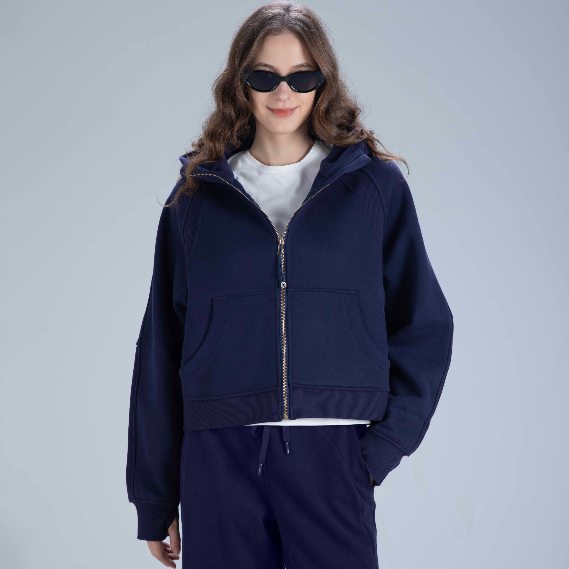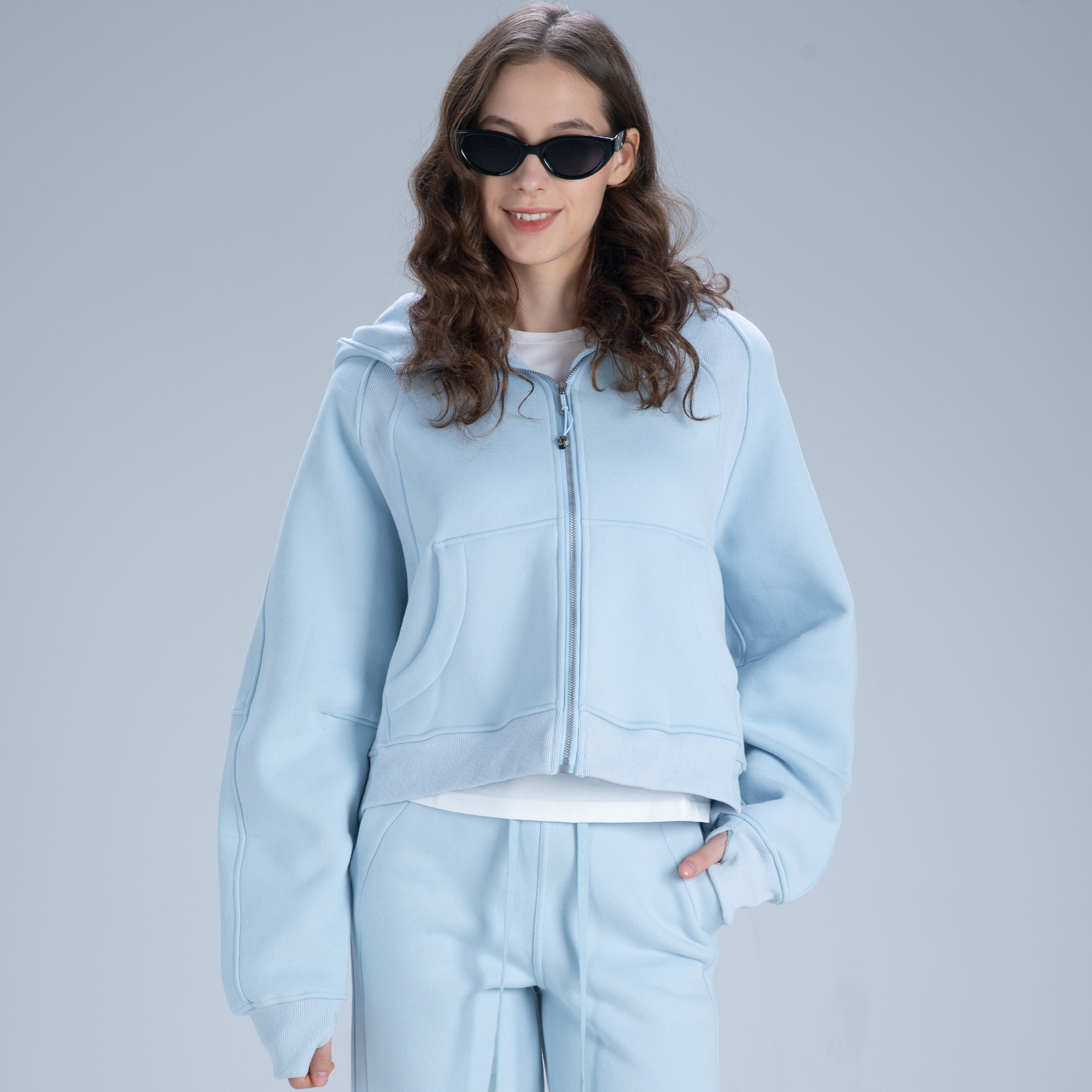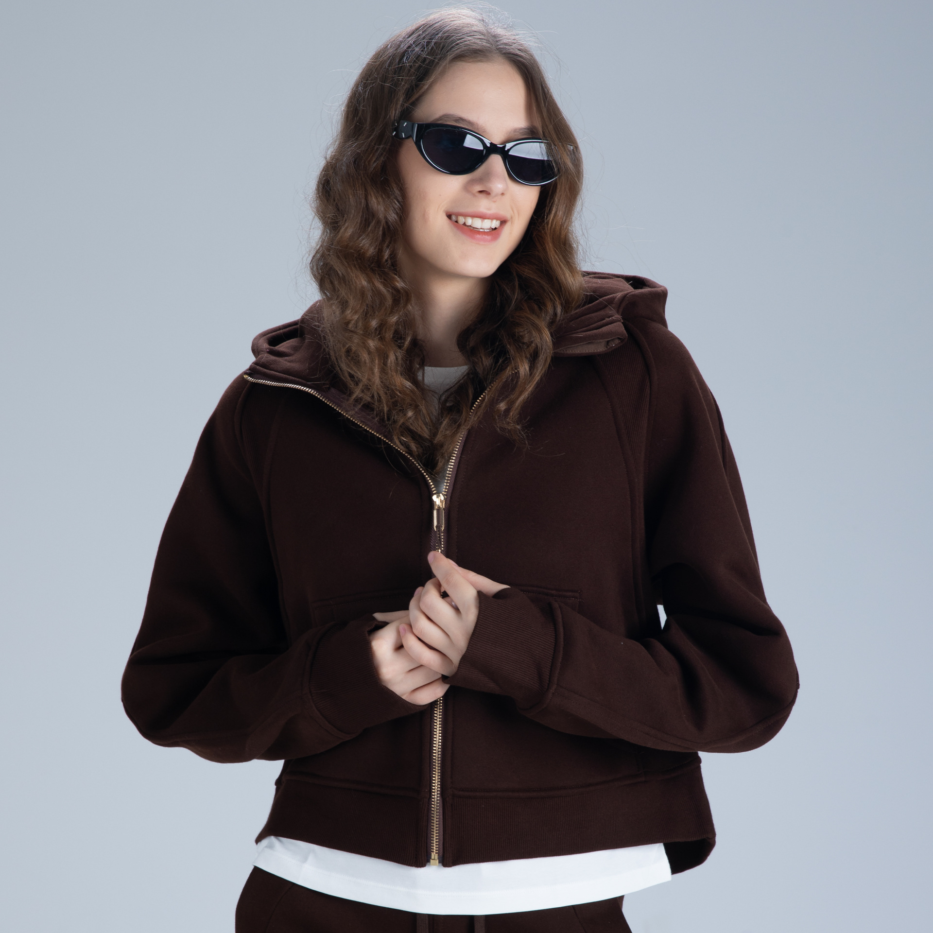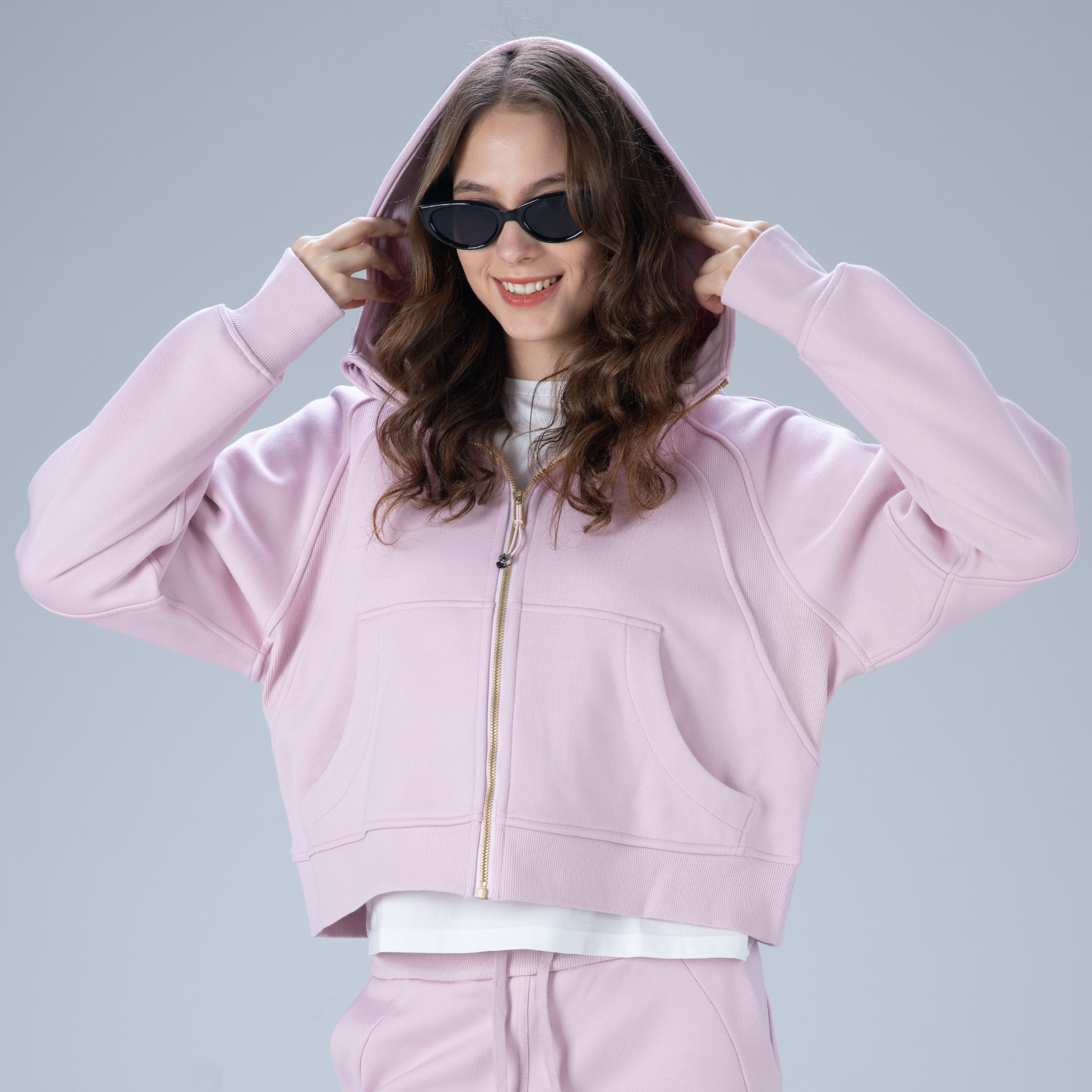 Description: This zip-up cropped hoodie jacket is a versatile staple for any wardrobe. Made from a cozy, breathable fleece blend, it features an adjustable hood, practical front pockets, and an oversized cropped fit. The full-zip design ensures easy wear, while the relaxed silhouette works for everything from lazy weekends to casual outings. Pair it with matching bottoms for a put-together set, or mix and match with your favorite pieces. Stay comfortable and fashion-forward with this everyday essential.